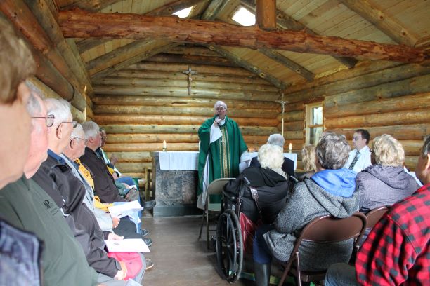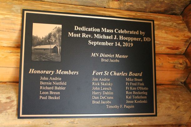 The Fort St. Charles Board of Trustees hosted a mass of celebration on Saturday, September 14, 2019 with Bishop Michael Hoeppner, Crookston Diocese, observing the dedication of a new chapel and the 70th anniversary of the fort restoration work by the Minnesota 4th Degree Knights of Columbus. The event was held on Magnusson Island, the original site of Fort St. Charles.