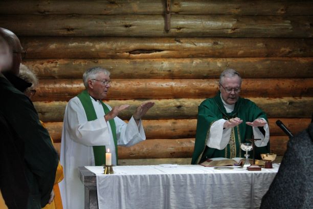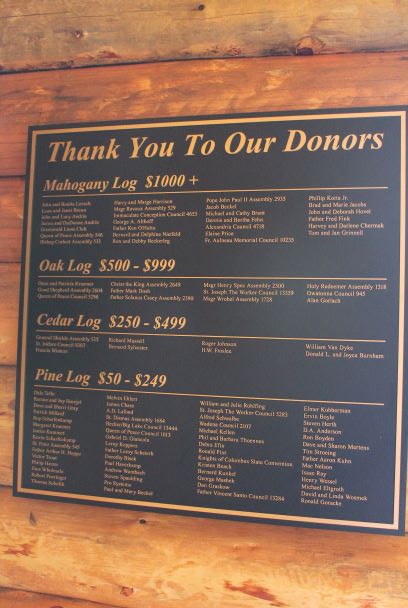 A new log chapel was constructed by Gerald Phillipe, Phillipe Log Homes, Warrod, MN, replacing the aging chapel that was constructed in 1953. The alter, which was dedicated in 1951, was placed inside the new chapel.