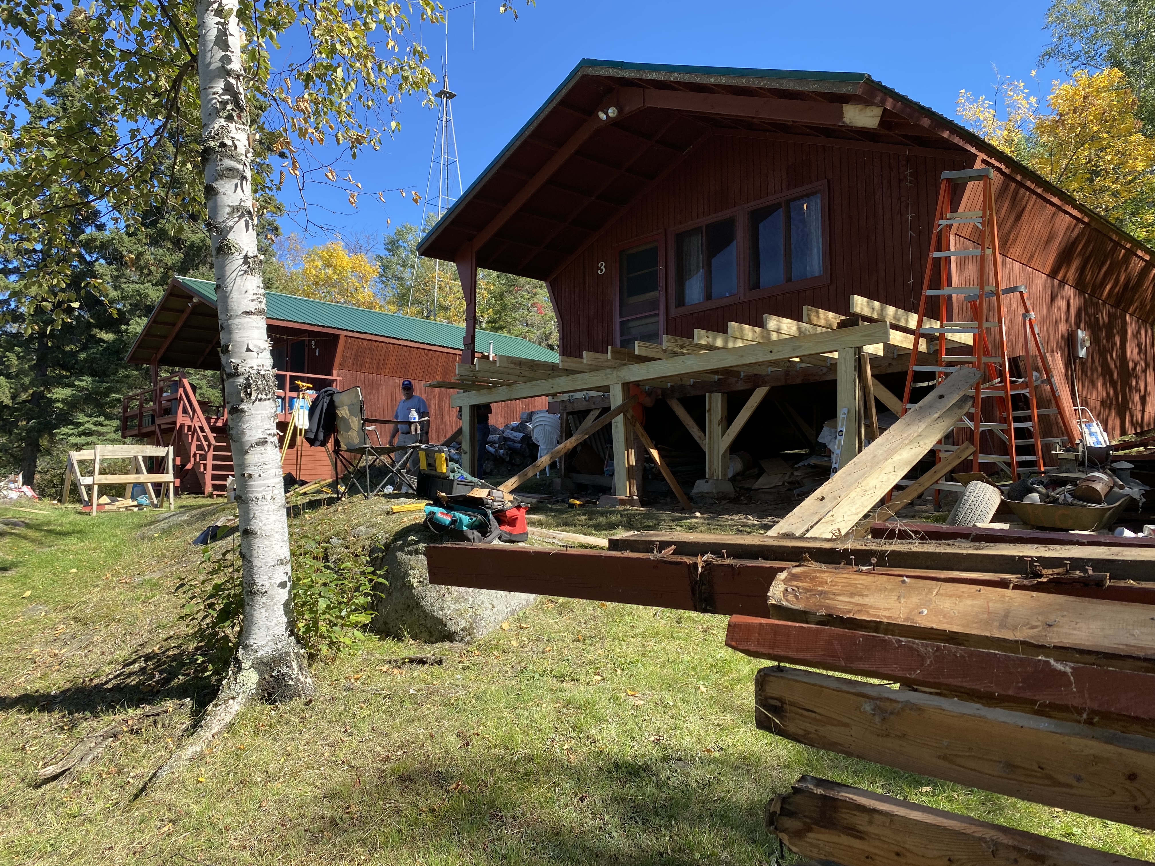 New decks and stairs were constructed and painted for cabins 2 and 3 in 2023.