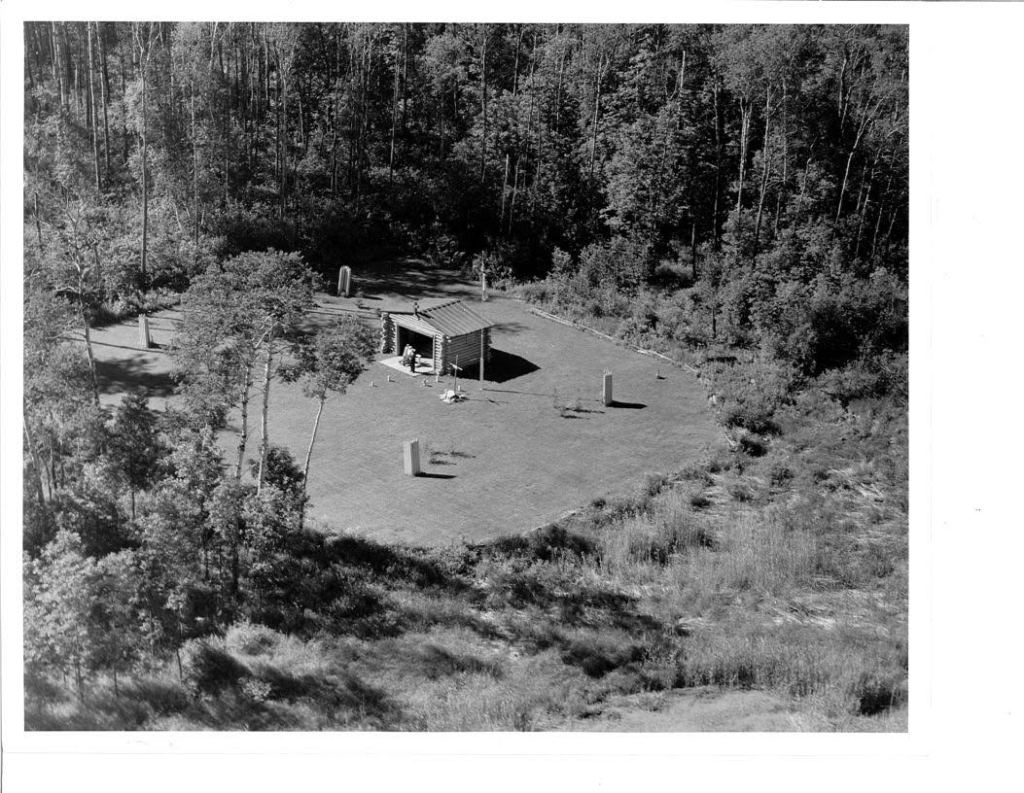 In 1951 work groups of Fourth Degree Knights with only hand tools began felling trees and clearing brush. Work continued in the summers. The chapel was erected in 1955 and the fort palisade and corner bastions were completed in 1960.